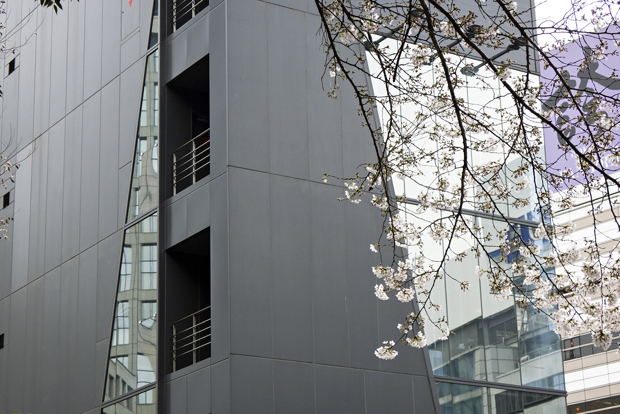 My body of work, "Sakura", was shot in Japan, in the spring of 2016, during cherry blossom season. This series of color photographs presents the blossoms against an urban cityscape. The city hardscape is used to create a strong graphic background in contrast to the cherry blossoms. The compositions employ a contemporary aesthetic while referencing stylistic elements and themes from traditional Ukiyo-e woodblock prints, particularly cropping, fragmentation, and the inclusion of daily life in some of the images. These photos offer a different view of cherry blossom season by embedding the blossoms in the dense visual grid of the Japanese city and avoiding a romanticized depiction of the trees and blossoms.Click any image to launch the viewer. Click on the right or left side of the image to go to the previous or next image.